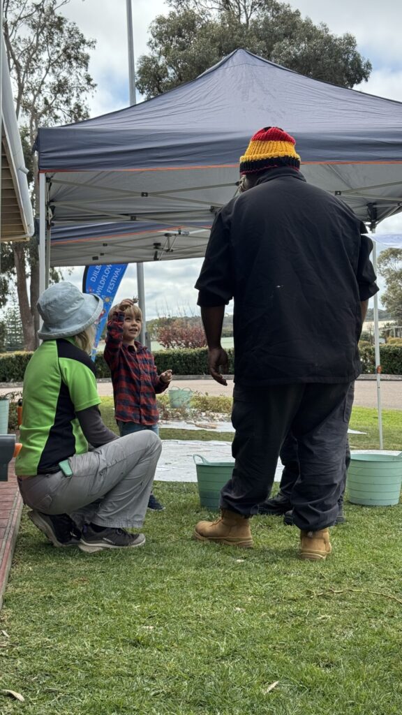 Central to this depth were the Aboriginal Rangers who partnered with the festival. Their presence grounded the experience in living culture. They shared stories of Kepa Kurl, of the salt lakes and wetlands, of traditional gathering places and symbols. They helped us and the children trace the connections between the arid goldfields, the ocean, and the inland ecosystems.