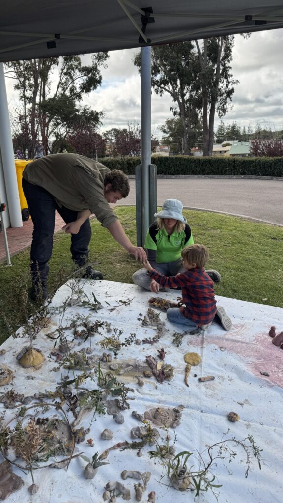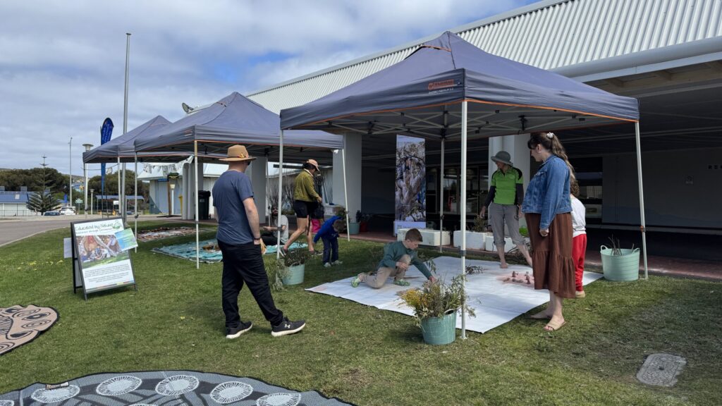 Over the following days, we did meet hundreds of people, with several school groups rotating through different stations. We saw over 700 students and educators, giving them a similar experience with time to pause and consider the natural materials in front of them and the natural landscape around Esperance.